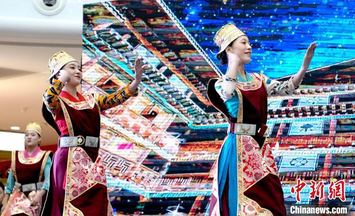 圖為西藏林芝第二十二屆桃花旅游文化節(jié)推介會(拉薩站)現場的文藝演出。李林 攝
