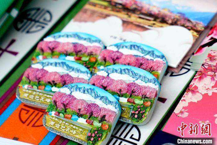 圖為西藏林芝第二十二屆桃花旅游文化節(jié)推介會(拉薩站)現場,展出的文創(chuàng)產品。李林 攝