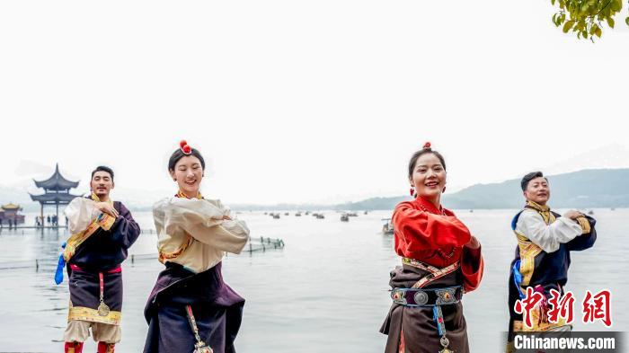 活動(dòng)當(dāng)天,身著彩云紋藏裝的波密兒女踏歌而來(lái),沿著斷橋、雷峰塔等西湖文化地標(biāo),開(kāi)啟流動(dòng)的藝術(shù)巡演。藏式廣袖輕揚(yáng)間掠過(guò)湖光,自發(fā)加入的游客與藏族演員即興共舞,在千年勝景中勾勒出民族交往交流交融的動(dòng)人圖景?;顒?dòng)現(xiàn)場(chǎng),熱情的藏族姑娘、藏族小伙為參與互動(dòng)的游客送上“桃花氣球”和文創(chuàng)禮品,將高原春日的印記留在江南水岸。
