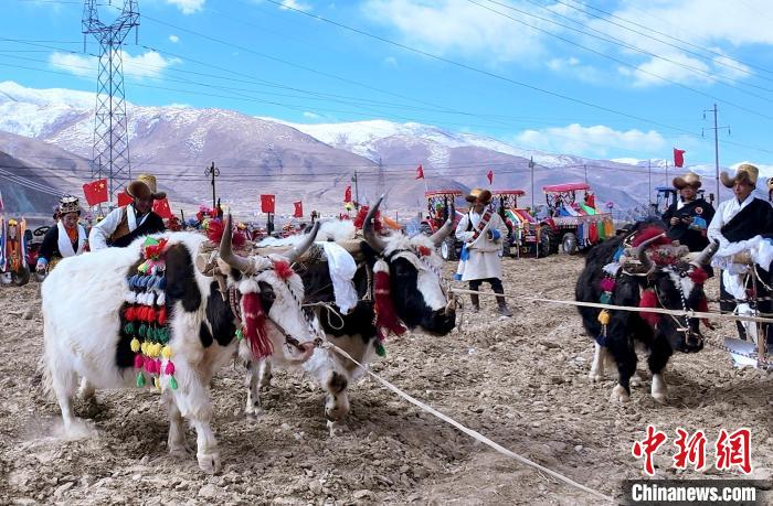 開(kāi)犁的時(shí)間到了,傳統(tǒng)的“二牛抬杠”開(kāi)啟春耕“第一犁”。隨后,拖拉機(jī)入田開(kāi)耕,婦女跟在拖拉機(jī)后面,播撒青稞種子。