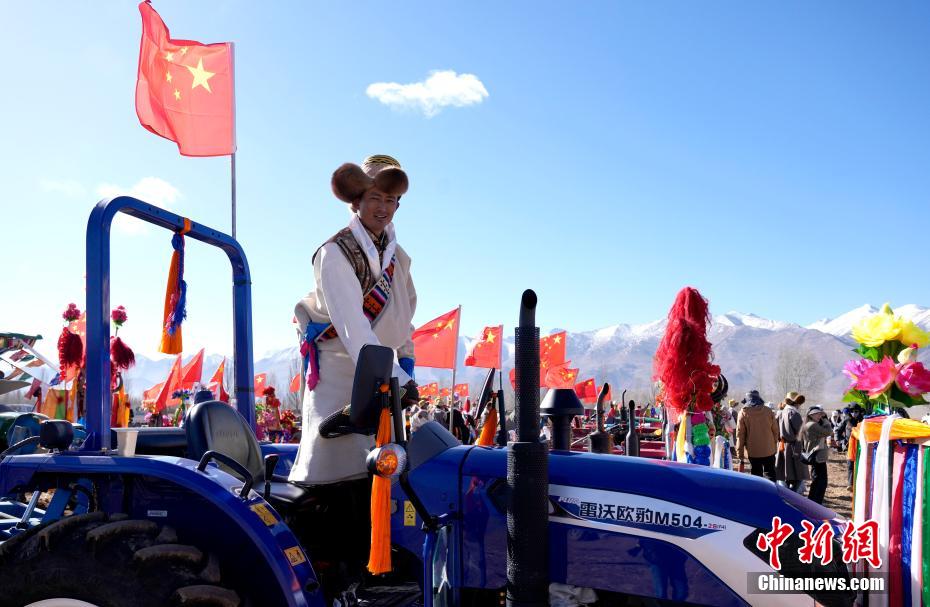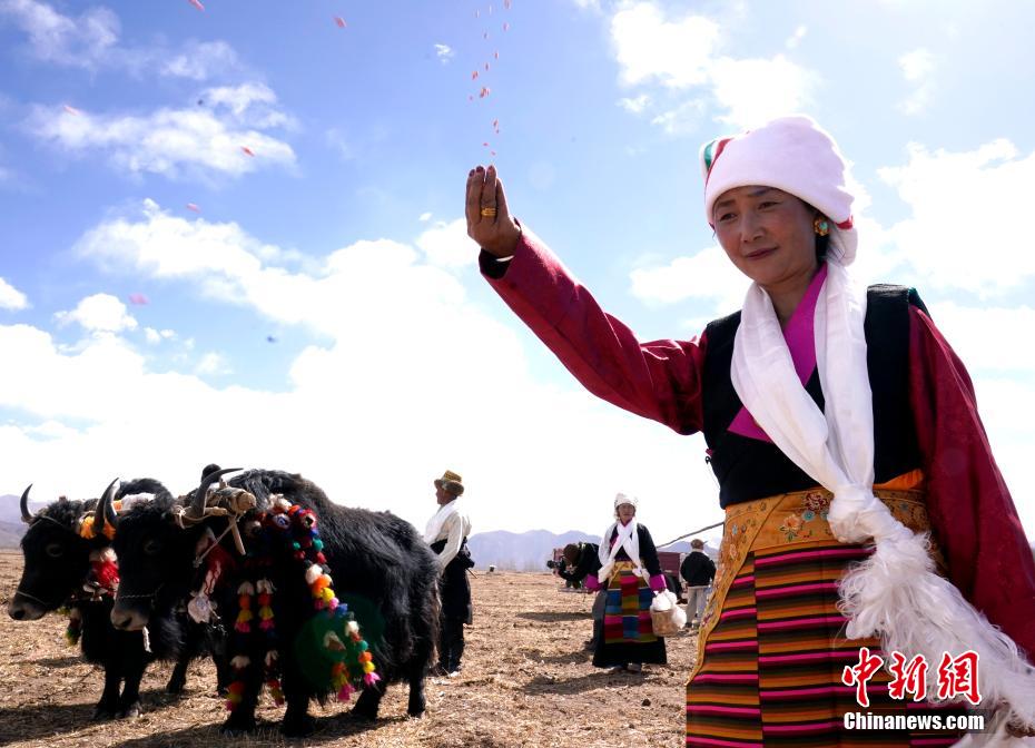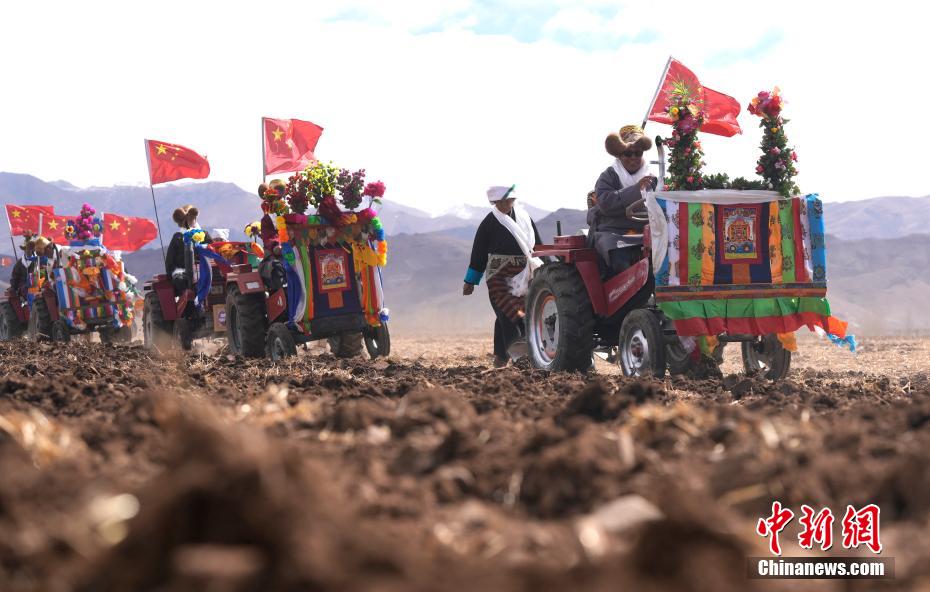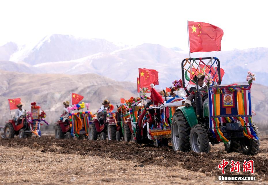 3月16日,是西藏農(nóng)區(qū)開耕的日子。村民身著節(jié)日盛裝,相聚在田間。傳統(tǒng)的“二牛抬杠”開啟“第一犁”后,拖拉機(jī)緊隨其后,婦女將手中的種子撒下,祈求風(fēng)調(diào)雨順、農(nóng)業(yè)豐收。圖為西藏拉薩市林周縣強(qiáng)嘎鄉(xiāng)春耕儀式現(xiàn)場。中新社記者 李林 攝