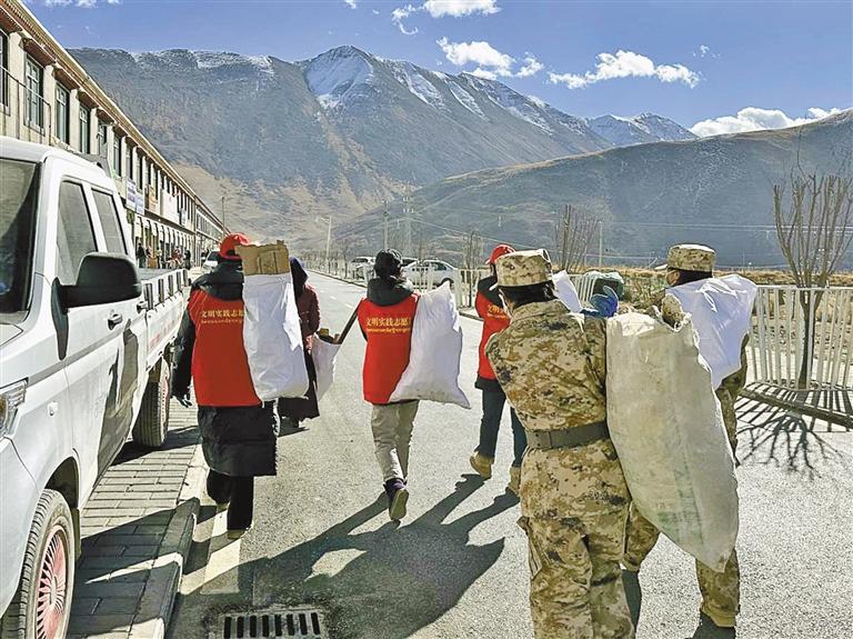 圖為唐古鄉(xiāng)黨委組織各村清理國道沿線垃圾。圖/文 記者 拉巴桑姆