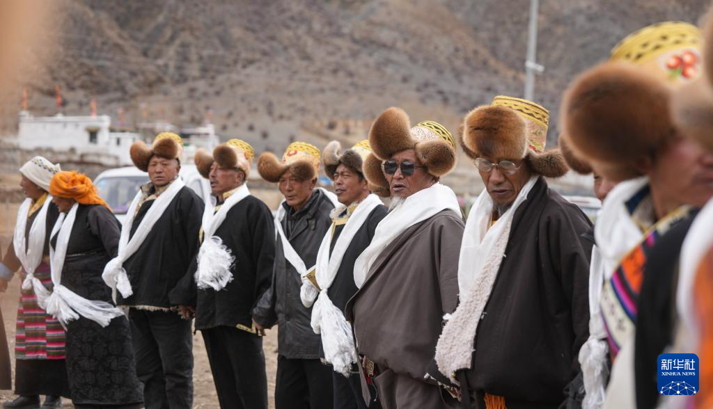旺慶老人(右)在春耕大典上為客人敬酒獻(xiàn)唱(3月16日攝)。新華社記者 晉美多吉 攝
