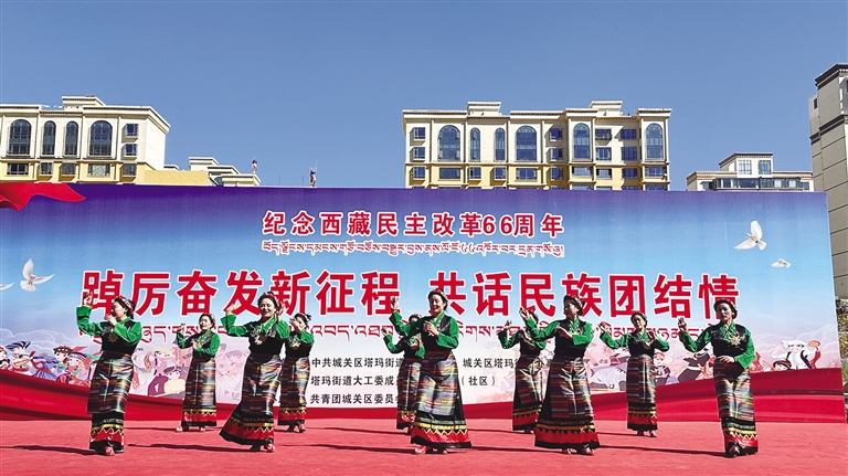 為隆重紀念西藏民主改革66周年,進一步豐富居民群眾的精神文化生活,助力提升基層治理,3月26日,由中共拉薩市城關區(qū)塔瑪街道工作委員會、拉薩市城關區(qū)塔瑪街道辦事處主辦的紀念西藏民主改革66周年系列活動在同心公園舉辦。據(jù)了解,此次活動以“踔厲奮發(fā)新時代 共話民族團結情”為主題,涵蓋文藝匯演和宣傳集市等,吸引了周邊眾多市民群眾參與。