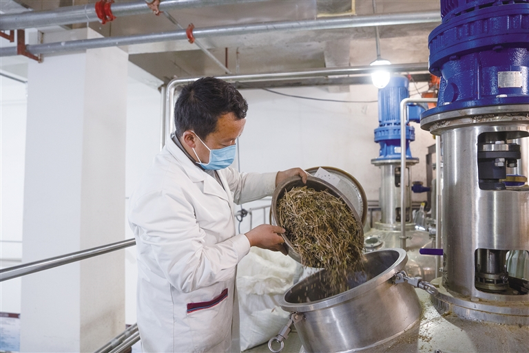 醫(yī)生將刺柏、櫻草杜鵑、藏麻黃、大籽蒿、水柏芝等五味藏藥倒入機器內(nèi)熬煮。