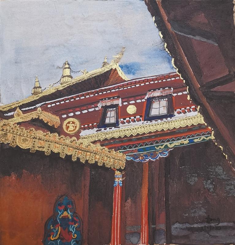 她畫(huà)筆下描繪的古城拉薩、朵朵白云、一草一木、民居建筑和人物形象都融入了對(duì)于藏文化的理解和對(duì)西藏美好生活的熱愛(ài)之情。她將這些景象都轉(zhuǎn)化為自己的藝術(shù)語(yǔ)言并賦予在了一層層傳統(tǒng)麻紙之上。在她的創(chuàng)作世界里,藝術(shù)是一場(chǎng)結(jié)合了研究的探索,是一場(chǎng)永不停歇的心靈對(duì)話,她希望一直能用自己的藝術(shù)語(yǔ)言堅(jiān)持傳統(tǒng)繪畫(huà)方式,不斷摹古繼新。
