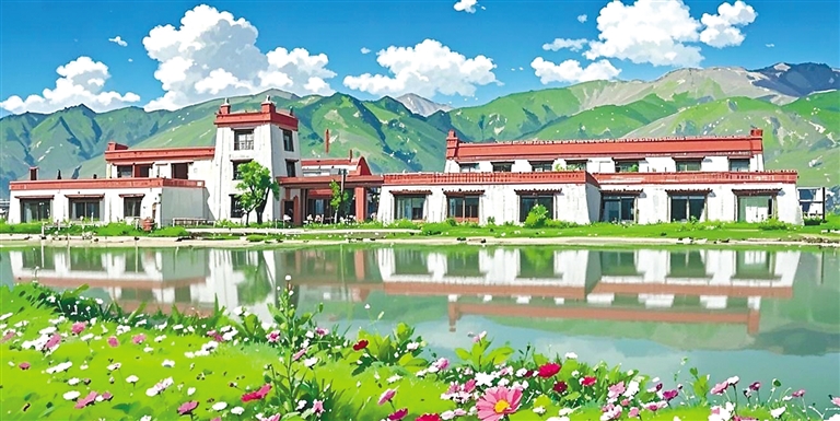 “我就是想以動(dòng)畫(huà)風(fēng)格給大家展示不一樣的堆龍?!钡┰隼氛f(shuō)。只見(jiàn)她又將照片導(dǎo)入AI圖片生成軟件內(nèi),AI自動(dòng)識(shí)別圖像元素——經(jīng)幡的布料特性、水流的物理參數(shù)、建筑材質(zhì)的反光數(shù)據(jù)。輕點(diǎn)“生成”按鈕,1分23秒后,一張動(dòng)畫(huà)風(fēng)格的Shadada CoffeeX新型公共文化空間的圖片便呈現(xiàn)在眼前。重點(diǎn)不是技術(shù),是審美把關(guān),旦增拉姆指著屏幕上的失敗案例:“AI把青稞田處理成糖果色卡通,把圖書(shū)館渲染成賽博朋克風(fēng)格。我每天要調(diào)整無(wú)數(shù)次參數(shù),就像教AI理解什么是藏地美學(xué)。”她用最現(xiàn)代化的數(shù)字工具,“描繪”著堆龍德慶區(qū)新的光影詩(shī)篇。