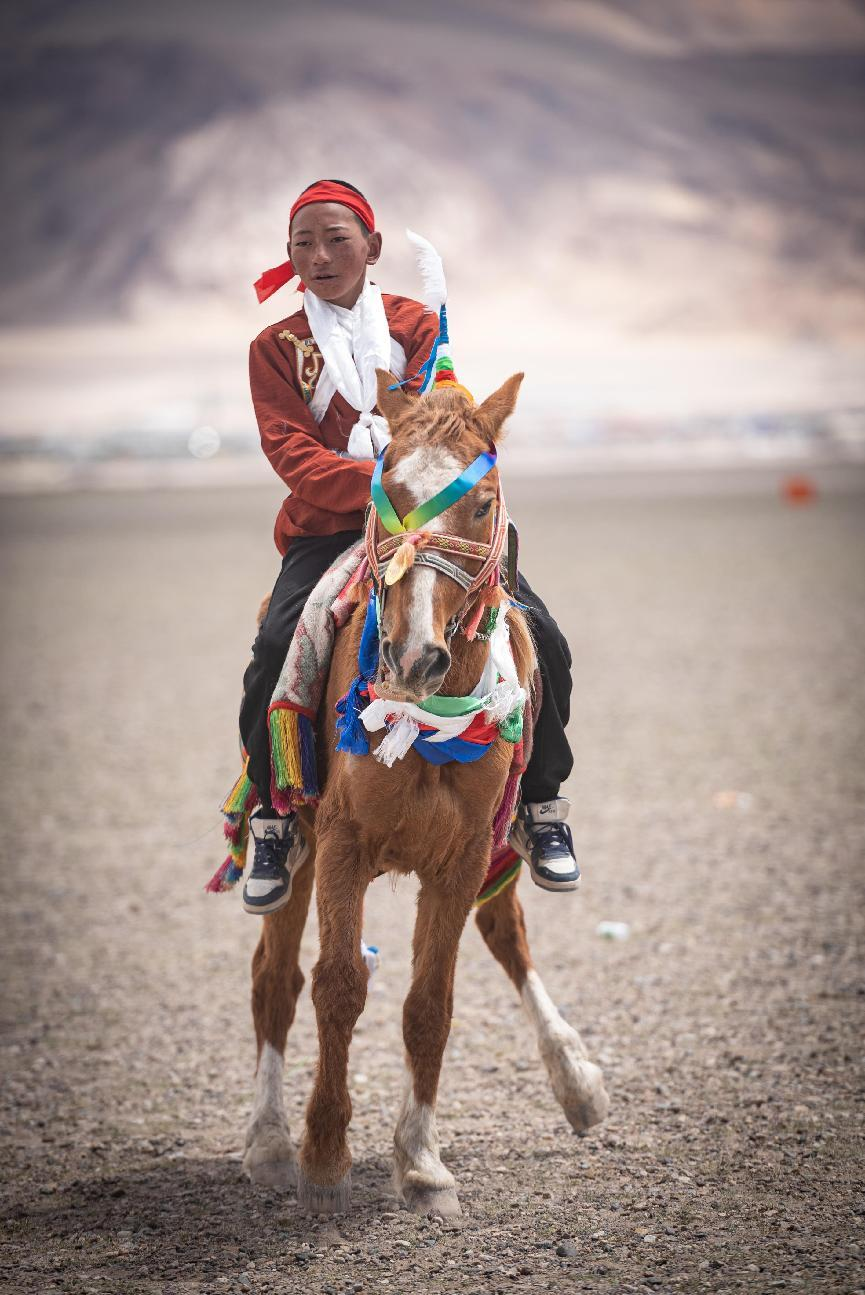 作品簡(jiǎn)介(作者自述):賽馬是一項(xiàng)技巧性的運(yùn)動(dòng),也是每年林周縣望果節(jié)最為隆重的一項(xiàng)體育活動(dòng)。活動(dòng)一般以鄉(xiāng)為單位,各鄉(xiāng)選出優(yōu)秀的騎手和馬匹統(tǒng)一到指定的鄉(xiāng)進(jìn)行比賽。此組照片為首屆彭域熱柏久賽馬節(jié)隆重舉行。