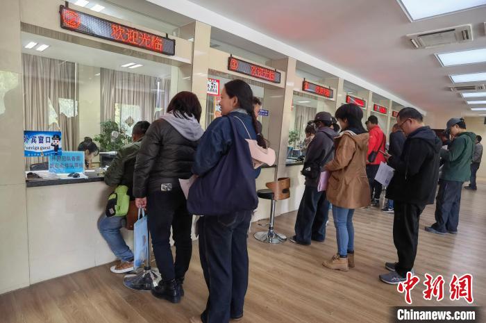 圖為西藏出入境邊防檢查總站辦證大廳,民眾正排隊辦理證件。徐錫萬 攝