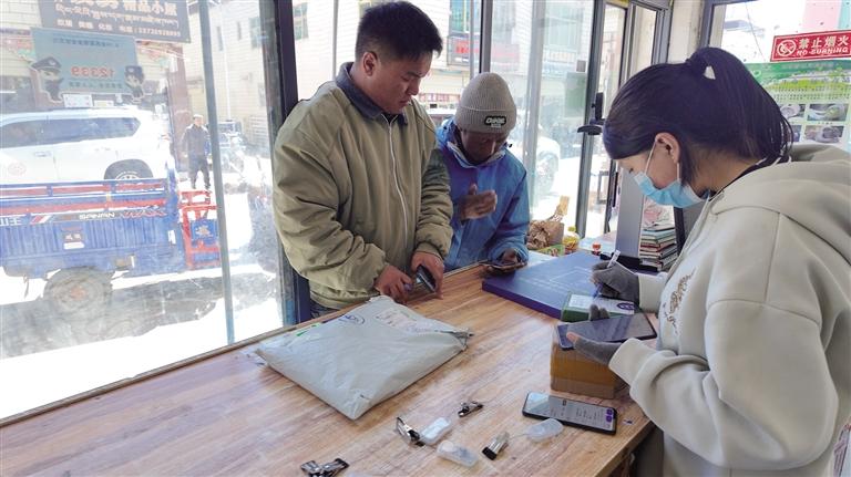 定日縣中通快遞公司營業(yè)網(wǎng)點也十分繁忙,幾位工作人員埋頭分揀,來這里發(fā)快遞的群眾在窗口外排隊辦業(yè)務。網(wǎng)點負責人秦女士介紹,中通快遞的網(wǎng)點已經(jīng)布設到定日縣的曲洛鄉(xiāng)、措果鄉(xiāng)、扎果鄉(xiāng)、扎西宗鄉(xiāng)等,而位于縣城的營業(yè)網(wǎng)點還代收圓通、申通、韻達、極兔等快遞公司的快遞,最近收件量特別大,網(wǎng)點11個員工每天從早上9點忙到晚上10點半,才能完成當天的分揀、信息錄入和與郵政對接等工作。