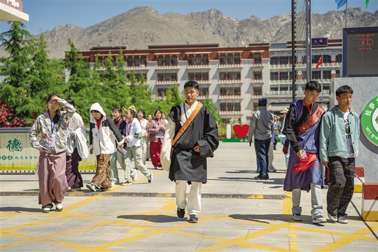 考生走出考場。記者 桑旦歐珠 攝