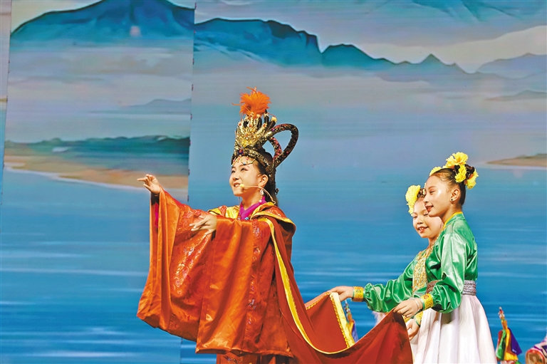 舞臺(tái)中央,12歲的其美卓嘎身著錦繡華服,以清亮唱腔和靈動(dòng)演繹,將文成公主的溫婉堅(jiān)毅展現(xiàn)得淋漓盡致。“當(dāng)我穿上戲服、唱起‘漢藏情誼潔如璧’時(shí),仿佛真的穿越到千年前的和親之路。”演出結(jié)束后,小姑娘眼中閃爍著興奮的光芒,“原來民族團(tuán)結(jié)的故事,就藏在這些古老而動(dòng)人的戲文里?!逼涓赣H倫珠難掩自豪:“文成公主促進(jìn)了漢藏交融,女兒能表演這個(gè)節(jié)目,用藏戲詮釋民族團(tuán)結(jié),是我們?nèi)业尿湴粒 ?/p>