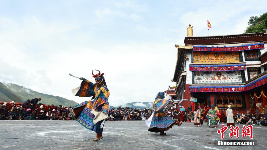 近日,西藏自治區(qū)拉薩市墨竹工卡縣直孔替寺舉行中國(guó)國(guó)家級(jí)非物質(zhì)文化遺產(chǎn)直孔嘎爾羌姆(跳神)活動(dòng)。直孔嘎爾羌姆是藏傳佛教重要的宗教舞蹈藝術(shù)形式,“嘎爾”意為“樂舞”。其表演具有規(guī)范化的舞蹈動(dòng)作、獨(dú)特的伴奏音樂和完整的儀軌流程。圖為西藏拉薩市墨竹工卡縣直孔替寺僧人們佩戴面具參加跳神活動(dòng)。