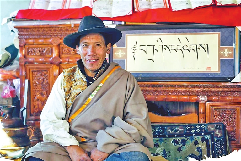 索朗多布杰與他的作品。通訊員 加布 攝