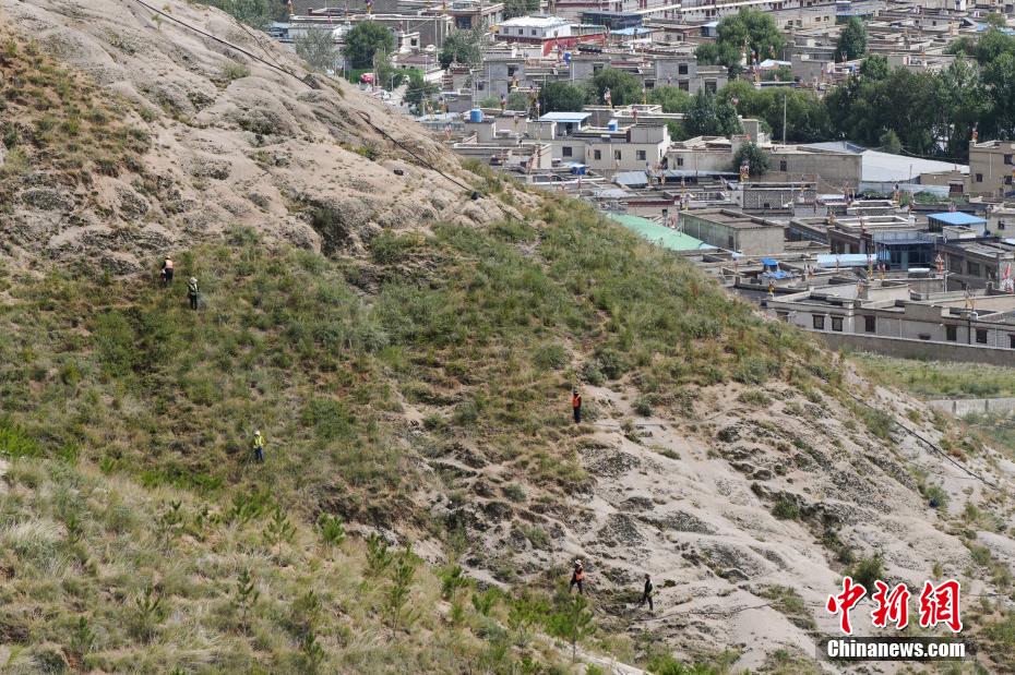 7月16日,在西藏拉薩娘熱溝,工作人員在維護南北山綠化工程的植被。據(jù)了解,拉薩南北山綠化工程于2021年啟動,東起墨竹工卡縣尼瑪江熱鄉(xiāng),西至曲水縣茶巴拉鄉(xiāng),東西綿延近200公里,計劃完成國土綠化面積206.72萬畝,助力拉薩成為生態(tài)宜居的高原首府城市。中新社記者 張祥毅 攝