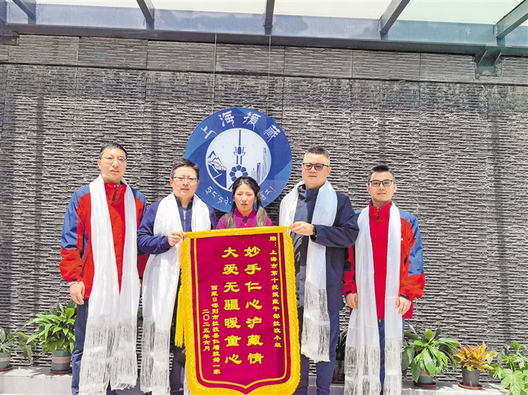 康復(fù)后的患者家屬給上海市援藏醫(yī)生送來(lái)錦旗表達(dá)感謝。