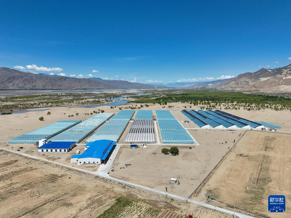 這是建立在西藏山南市扎囊縣阿扎鄉(xiāng)沙化地上的西藏綠之源現(xiàn)代農(nóng)業(yè)科技股份有限公司的果蔬大棚,該公司收購(gòu)當(dāng)?shù)嘏Q蚣S,腐熟后加入有機(jī)肥來改良沙化地,利用現(xiàn)代農(nóng)業(yè)設(shè)施和科學(xué)管培技術(shù)保障有機(jī)種植的可持續(xù)性發(fā)展(無人機(jī)照片,7月19日攝)。新華社記者 李鑫 攝