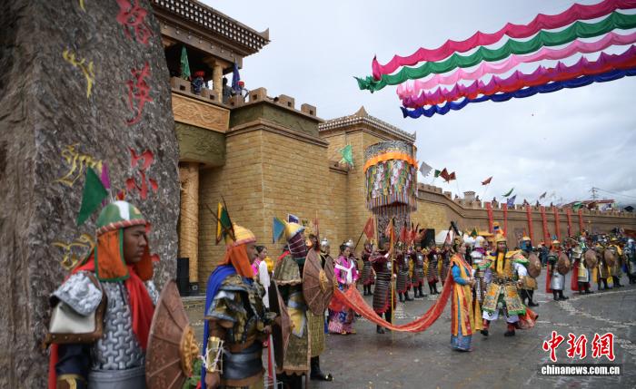 2019年9月16日,四川甘孜縣格薩爾王城暨百村產(chǎn)業(yè)基地舉行開城儀式,城內(nèi)以格薩爾故事打造的景觀小品體驗(yàn)地有1000余處,游客可聽《格薩爾》說唱、看《格薩爾》藏戲等。中新社記者 劉忠俊 攝