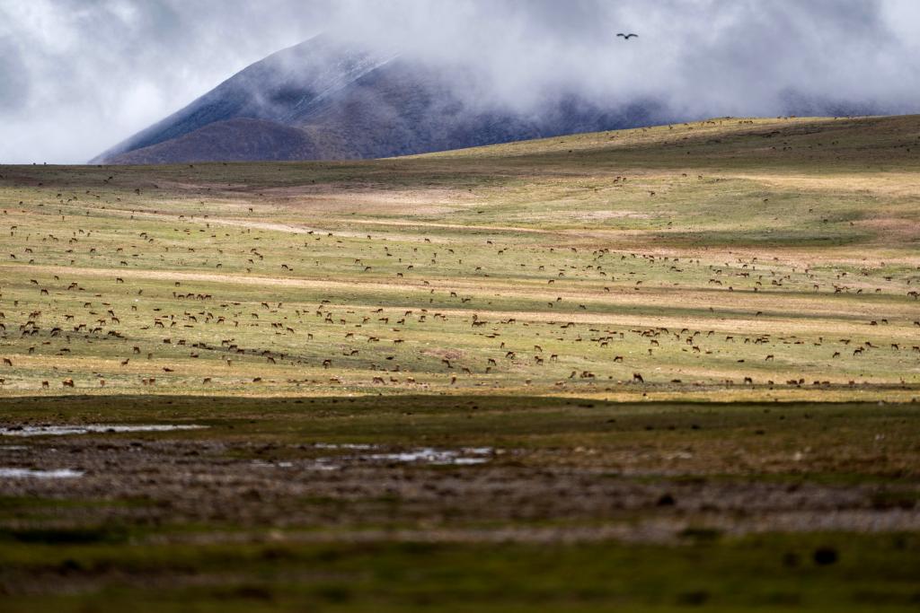 每年7月,在這里出生的藏羚羊幼崽會跟隨母羊遷徙至棲息地。每到這時,藏羚羊們會齊聚森隆藏布河西岸,陸續(xù)過河。