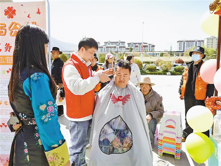 社區(qū)能人為群眾免費(fèi)理發(fā)?!?/p>
