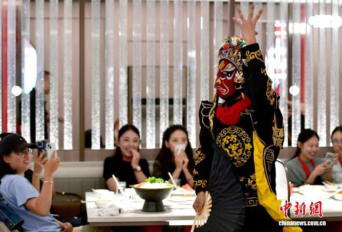 8月4日,西藏拉薩一餐飲店,服務(wù)人員現(xiàn)場(chǎng)表演。近年來(lái),隨著一批涵蓋了零售、餐飲、休閑娛樂等各大領(lǐng)域的品牌首店在拉薩開業(yè),為當(dāng)?shù)孛癖妿?lái)諸多新鮮體驗(yàn)的同時(shí),也促進(jìn)了城市消費(fèi)升級(jí)。圖為變臉表演。中新社記者 李林 攝