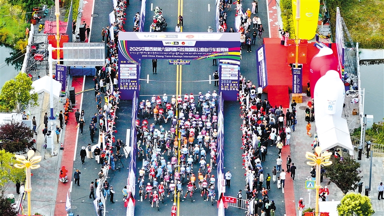 8月7日上午9時30分,發(fā)令槍鳴響,來自國內(nèi)外17支隊伍的100多名參賽選手,如離弦之箭般沖出林芝市巴宜區(qū)工布公園的起點線,正式開啟2025中國西藏第六屆跨喜馬拉雅國際公路自行車極限賽的競逐。