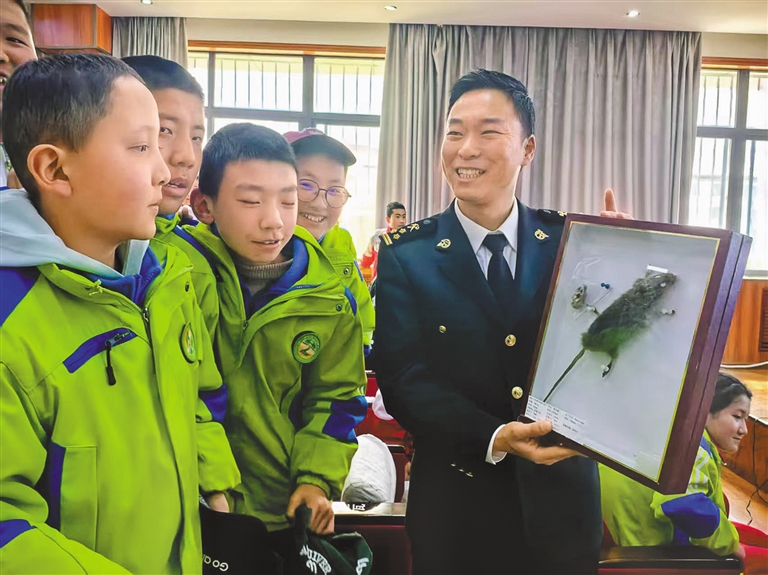 “同學(xué)們,這個(gè)圓柱形的赤褐色小蟲(chóng)子,大家知道是什么嗎?它可是木材的‘隱形殺手’……”近期,在拉薩市第七中學(xué)課堂上,海關(guān)關(guān)員通過(guò)實(shí)物標(biāo)本展示,向120余名師生生動(dòng)講解檢疫性有害生物雙鉤異翅長(zhǎng)蠹的危害?;顒?dòng)現(xiàn)場(chǎng),海關(guān)關(guān)員通過(guò)展示外來(lái)入侵物種標(biāo)本、講解“異寵”及外來(lái)物種入侵危害知識(shí),幫助同學(xué)們了解《中華人民共和國(guó)生物安全法》等相關(guān)法律法規(guī),引導(dǎo)青少年樹(shù)立生物安全意識(shí),積極守護(hù)生態(tài)安全。