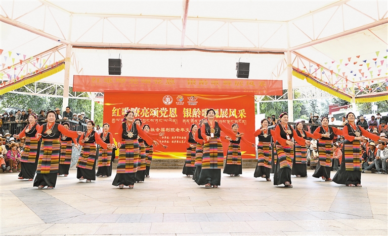 近日,拉薩市社會福利院在龍王潭公園舉辦“紅歌嘹亮頌黨恩,銀齡歌舞展風(fēng)采”主題活動。活動現(xiàn)場,老年學(xué)員們通過紅歌聯(lián)唱、傳統(tǒng)鍋莊舞表演及民族手工藝品展示,全面展現(xiàn)“老年文化學(xué)堂”開設(shè)雙語、舞蹈、手工等課程的階段性成果。據(jù)了解,該活動旨在推廣“文化養(yǎng)老”服務(wù)模式,吸引更多社會老人參與福利院特色課程?!?/p>
