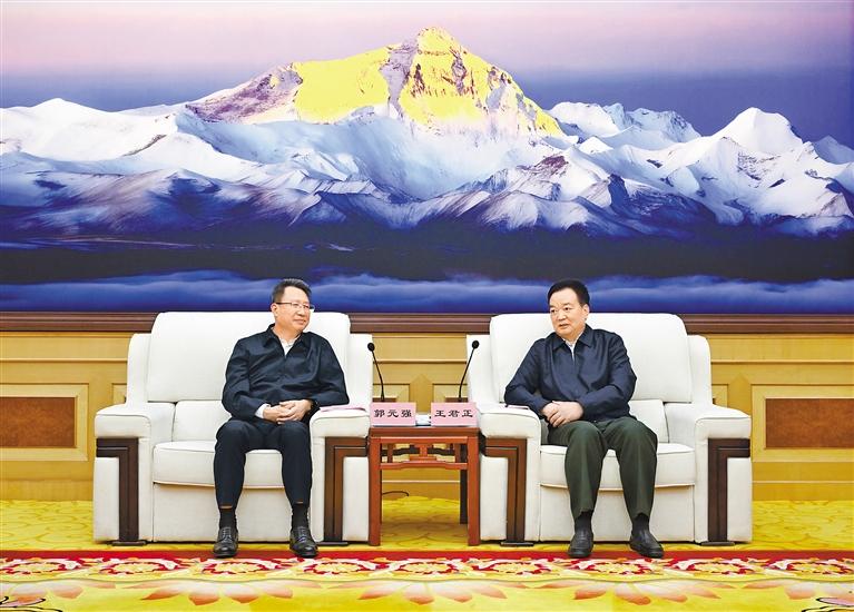 近日,自治區(qū)黨委書(shū)記王君正在拉薩與湖北省委常委、武漢市委書(shū)記郭元強(qiáng)一行座談。