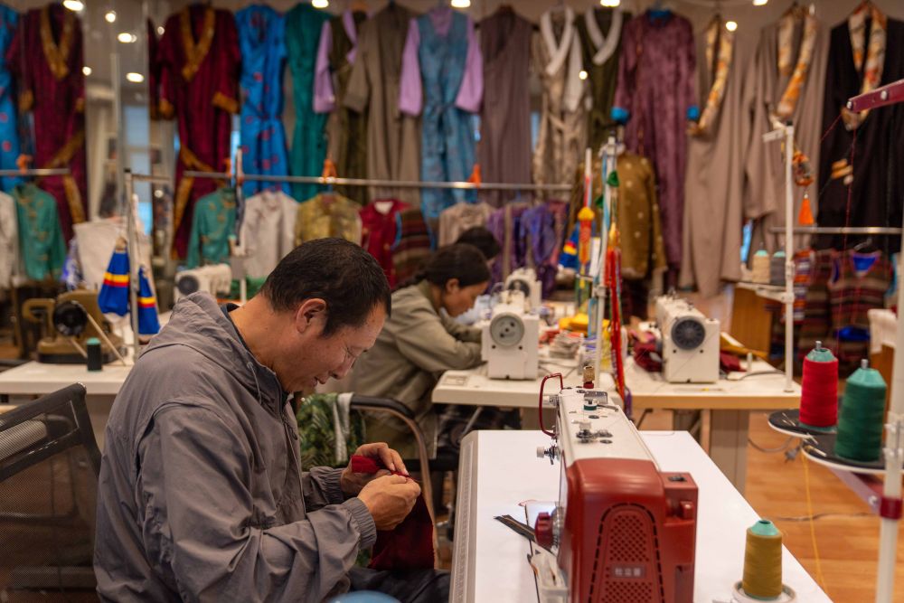 8月6日,服裝師在制作拉薩服飾。拉薩服飾入選西藏自治區(qū)級(jí)非物質(zhì)文化遺產(chǎn)代表性項(xiàng)目名錄。