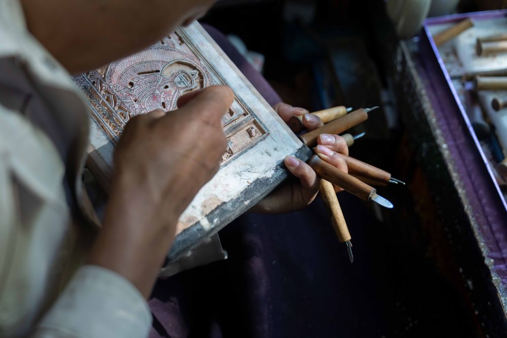 8月6日,一名雕刻師在雕刻中。西藏雪巴康雕版印刷制作技藝入選西藏自治區(qū)級(jí)非物質(zhì)文化遺產(chǎn)代表性項(xiàng)目名錄。