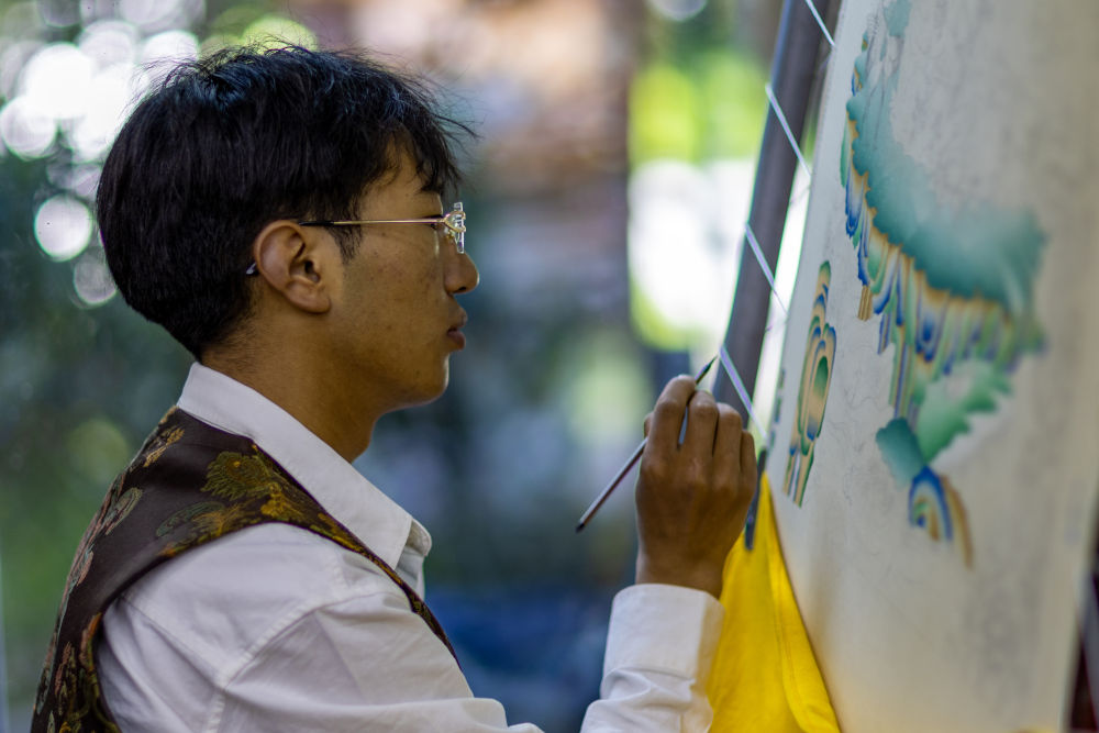 8月6日,一名畫師在繪制唐卡。藏族唐卡(齊吾崗派)入選國家級(jí)非物質(zhì)文化遺產(chǎn)代表性項(xiàng)目名錄。