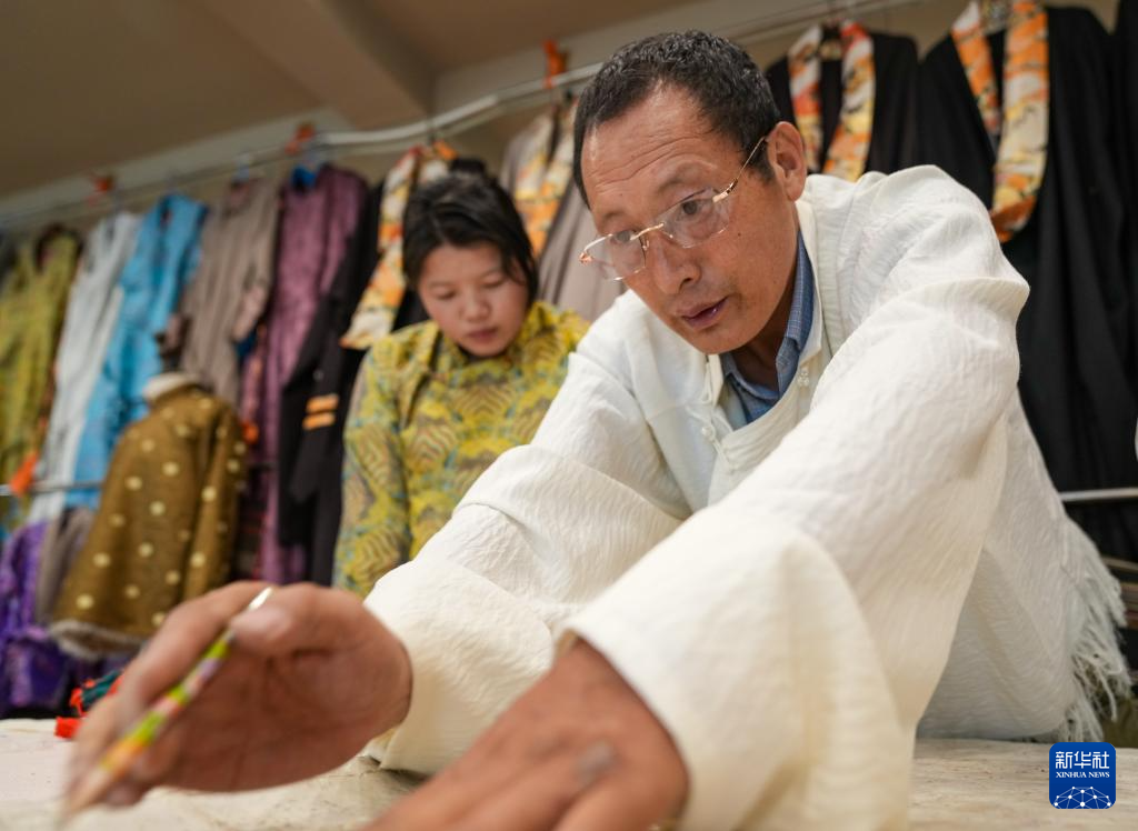 在拉薩雪堆白傳統(tǒng)手工藝術(shù)學(xué)校,60歲的西藏自治區(qū)級非物質(zhì)文化遺產(chǎn)項目藏族服飾(拉薩服飾)代表性傳承人洛桑麥朗,與學(xué)徒一道研究、制作藏裝。從藝四十余載,他培養(yǎng)了百余名弟子,還參與編撰教材、建立藏族服飾數(shù)據(jù)庫等工作。在他的巧手下,新式藏裝將傳統(tǒng)與現(xiàn)代交融,讓非遺技藝與現(xiàn)代審美碰撞,成為街頭一道靚麗的風(fēng)景。