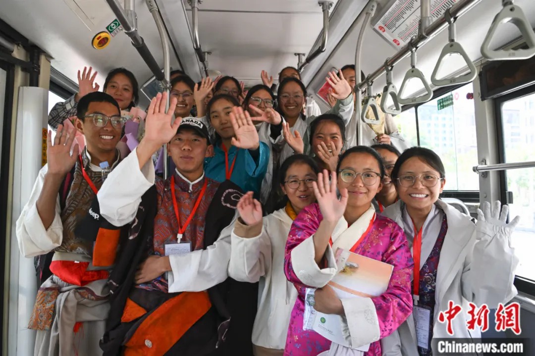 2025年6月9日,西藏自治區(qū)2025年普通高考完成所有科目考試。圖為考生們結(jié)束考試,準備乘車離開西藏拉薩江蘇實驗中學考點。中新社記者 貢嘎來松 攝