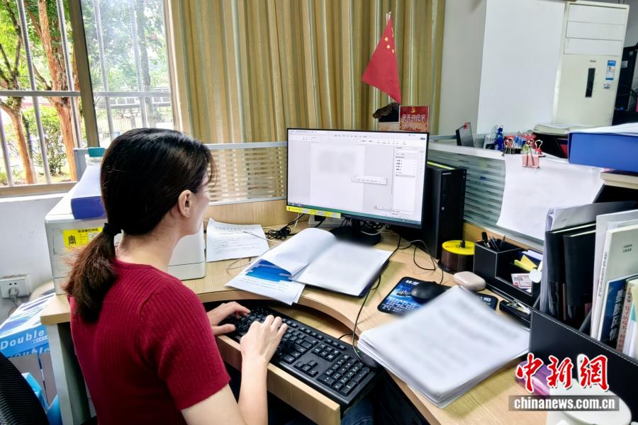 圖為黃小芳在辦公室撰寫材料。 受訪者供圖