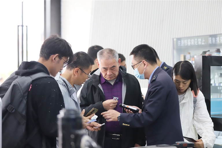 工作人員協(xié)助旅客查看車次。