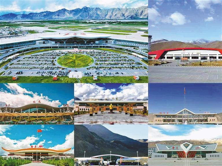 加快基建步伐,綜合體系加快構(gòu)建。西藏民航大力推進(jìn)平安、綠色、智慧、人文“四型機(jī)場”建設(shè),區(qū)內(nèi)機(jī)場由1個發(fā)展到8個,航站樓由1座發(fā)展到10座,面積由1661平方米增加到15.46萬平方米,跑道由1條增加至10條,空管、機(jī)場等運行保障設(shè)施多次更新迭代?!笆奈濉逼陂g,重點建設(shè)項目歷史最多、投資規(guī)模歷史最大,項目總投資達(dá)184.4億元,先后建成投用拉薩貢嘎國際機(jī)場T3航站樓、山南隆子、日喀則定日、阿里普蘭機(jī)場,拉薩貢嘎國際機(jī)場新建第二跑道以及T1、T2航站樓整體改擴(kuò)建工程。同時,隨著拉薩貢嘎機(jī)場正式升級為國際機(jī)場,西藏民航正加速構(gòu)建“一干多支”的現(xiàn)代化機(jī)場布局,為打造面向南亞的國際航空樞紐奠定堅實基礎(chǔ)。