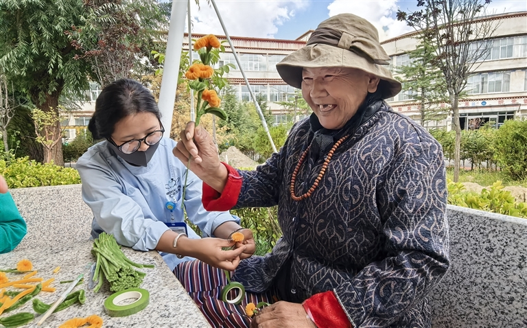此外,為提升老人們的幸福感,每逢重大節(jié)日,拉薩市社會福利院都會舉辦豐富多彩的文藝演出?!懊磕晡覀兣e辦大大小小的活動不少于200次,前幾天我們就在宗角祿康公園舉辦‘紅歌嘹亮頌黨恩,銀齡歌舞展風(fēng)采’活動,老人們通過紅歌聯(lián)唱、手工展示等形式,展現(xiàn)了他們積極向上的精神風(fēng)貌。”扎西頓珠表示,拉薩市社會福利院通過整合資源、創(chuàng)新服務(wù),開展的各類文化活動有效豐富了老年人的精神文化生活,滿足了老年人對養(yǎng)老院生活品質(zhì)的需求。