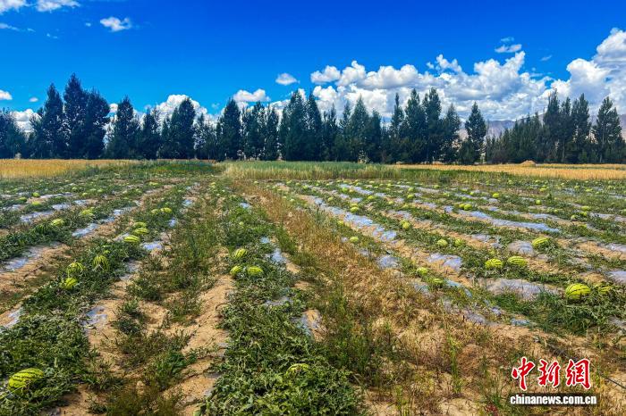 圖為9月6日,西藏日喀則桑珠孜區(qū)年木鄉(xiāng)羅林村露地種植的西瓜。(日喀則市融媒體中心供圖)