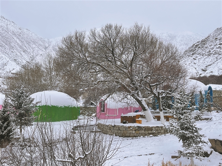 在如今已高樓林立的拉薩城,這片在廢墟上建起來的、堪稱世外桃源的寂靜山莊格外珍貴。更令人驚嘆的是,它的主人正是眼前這位高產的女作家?!按蟛糠稚钤谖鞑氐娜诵闹卸加幸粋€曠野存在。”羽芊為莊園賦予了另一個充滿詩意的名字——曠野牧蜂。而“牧蜂”,則是她人生實驗的最新溫暖篇章。為幫助患風濕的讀者好友,她潛心鉆研蜂療,從文人變身為“蜂療師”。如今,16箱蜜蜂已成為莊園躍動的靈魂,“我?guī)退s天敵,它把蜜分我一半?!弊援a的藏蜜化作蜂蜜酸奶、蜂蜜黃瓜等創(chuàng)意甜品。鮮花叢中,五座“團團屋”靜立花海,其中一座湛藍如夢境——那是羽芊最癡迷的顏色,盛滿童真與浪漫,仿佛將畫布上的理想色彩搬進了現(xiàn)實。她說:“我不過是在現(xiàn)實中裝點兒時夢想,也邀請他人來此綻放生命?!甭綀@中,常能看到她沉醉于一片花叢,凝神觀察光影變化,那是她在與自然進行最親密的靈魂對話。