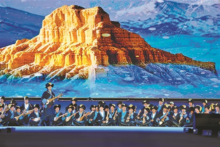 開幕式通過“線上直播+現(xiàn)場(chǎng)觀演”模式,為現(xiàn)場(chǎng)各界來賓、干部群眾及線上觀眾,呈現(xiàn)了一場(chǎng)內(nèi)容豐富、形式多元、內(nèi)涵深刻的視聽盛宴。此次演出時(shí)長(zhǎng)約80分鐘,投入演職人員300余人次,共呈現(xiàn)13個(gè)特色節(jié)目。演出以弘揚(yáng)優(yōu)秀傳統(tǒng)文化和鑄牢中華民族共同體意識(shí)為基調(diào),大膽革新藝術(shù)表達(dá)形式,將“音、舞、詩、畫”巧妙融合,并鑲嵌濃郁的阿里地域文化元素,通過多元文化交融的舞臺(tái)敘事,生動(dòng)詮釋中華民族“多元一體、和諧共生”的深刻內(nèi)涵,實(shí)現(xiàn)歷史與人文的激情碰撞。