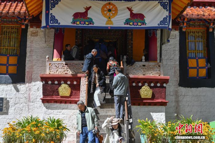 圖為游客在羅布林卡內參觀游覽。貢確 攝