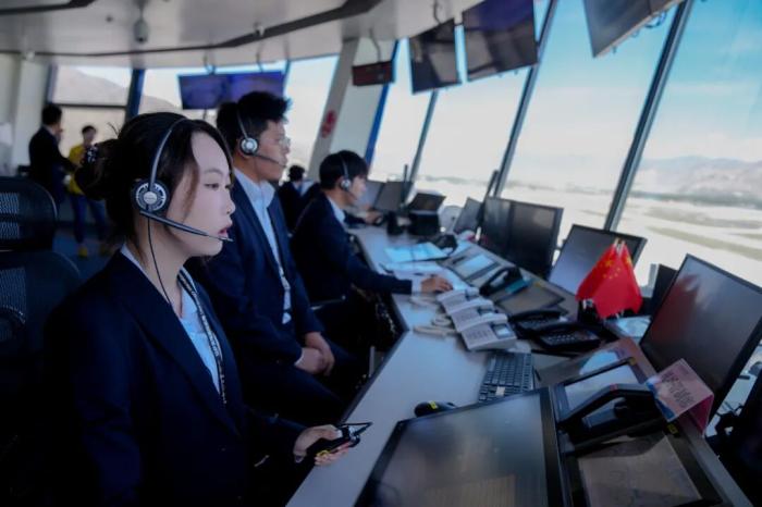 2025年7月18日,管制員在拉薩貢嘎國際機場塔臺工作。中新社記者 張祥毅 攝