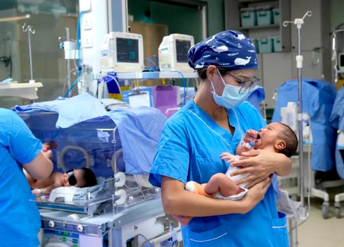 2025年9月5日,西藏拉薩,西藏阜康醫(yī)院新生兒科內(nèi),護士安撫新生兒。60年來,西藏婦女兒童衛(wèi)生健康水平顯著提高。中新社記者 李林 攝