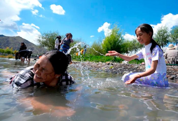 2025年9月13日,民眾在拉薩河邊享受沐浴節(jié)時光。沐浴節(jié),藏語稱為“嘎瑪日吉”。中新社記者 李林 攝