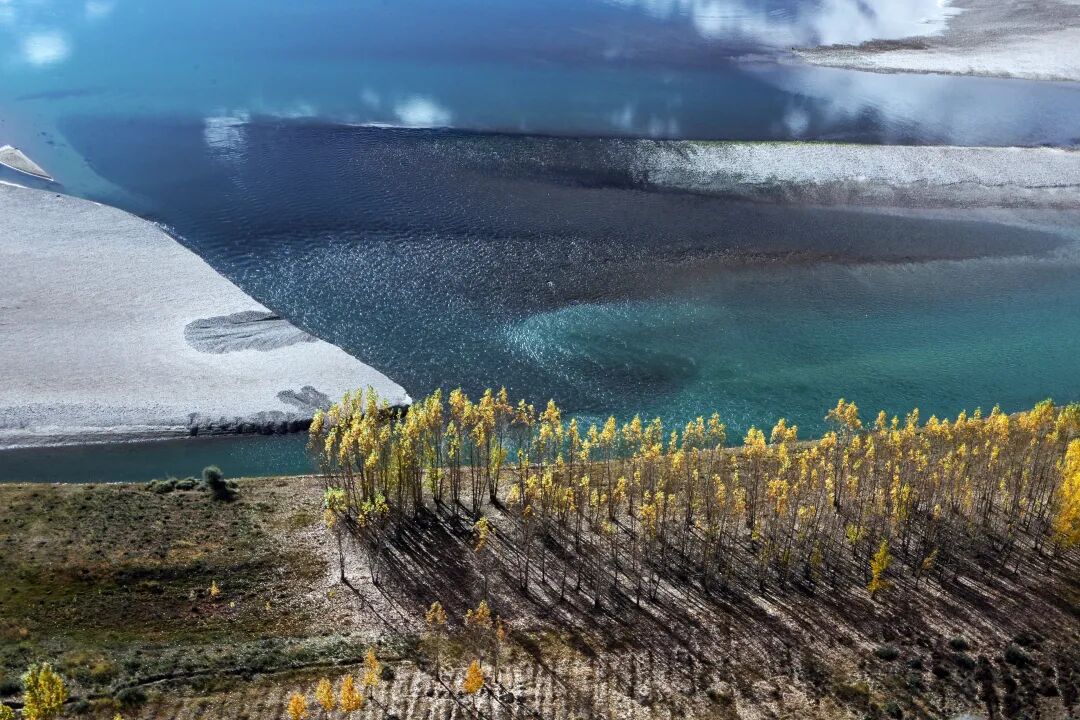 楊樹挺拔,葉片被秋風(fēng)染作金黃