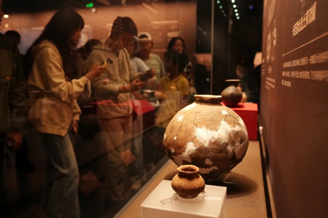 2025年7月15日,在位于拉薩的西藏博物館,卡若遺址出土的陶器吸引觀眾。中新社記者 張祥毅 攝