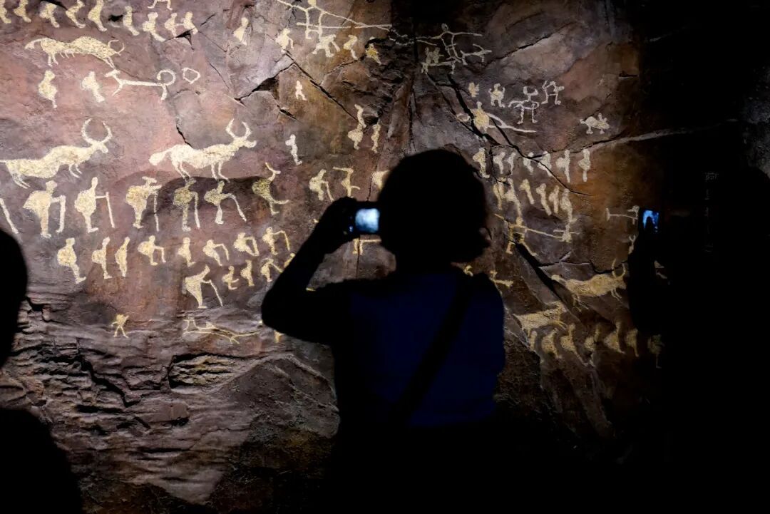 2024年10月19日,西藏拉薩,參觀者在西藏博物館內(nèi)拍攝巖畫。中新社記者 李林 攝