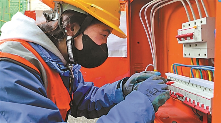 圖為次仁卓瑪正在檢修光伏設(shè)備。記者 萬(wàn)靖 攝