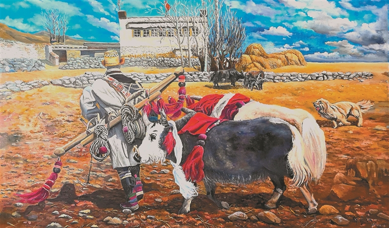 談起為什么不繼續(xù)從事更為熟悉的攝影行業(yè),而要在花甲之年挑戰(zhàn)自己。鄒文江說(shuō):“我親眼見(jiàn)證了西藏如何從封閉走向開(kāi)放,從貧困走向小康,西藏人民的生活是如何從食不果腹到‘全面小康’。父親那一代畫家主要描繪西藏的傳統(tǒng)風(fēng)貌,而我想展現(xiàn)的是西藏的發(fā)展變化,想把自己眼中的‘新西藏’展現(xiàn)給更多人看。”